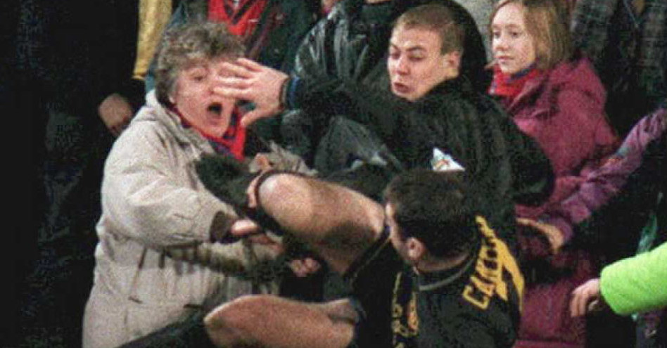 Nicht nur Gegner und Schiedsrichter, auch die Fans wurden bei so manchem Sportausraster zum Opfer. 1995 eskalierte der damalige Manchester United-Spieler Eric Cantona auf dem Weg in die Kabine und verpasste einem Fan nach einer angeblichen Beleidigung einen brutalen Kung-Fu-Tritt. Der Fußballer wurde daraufhin acht Monate gesperrt und entging nur knapp dem Gefängnis.