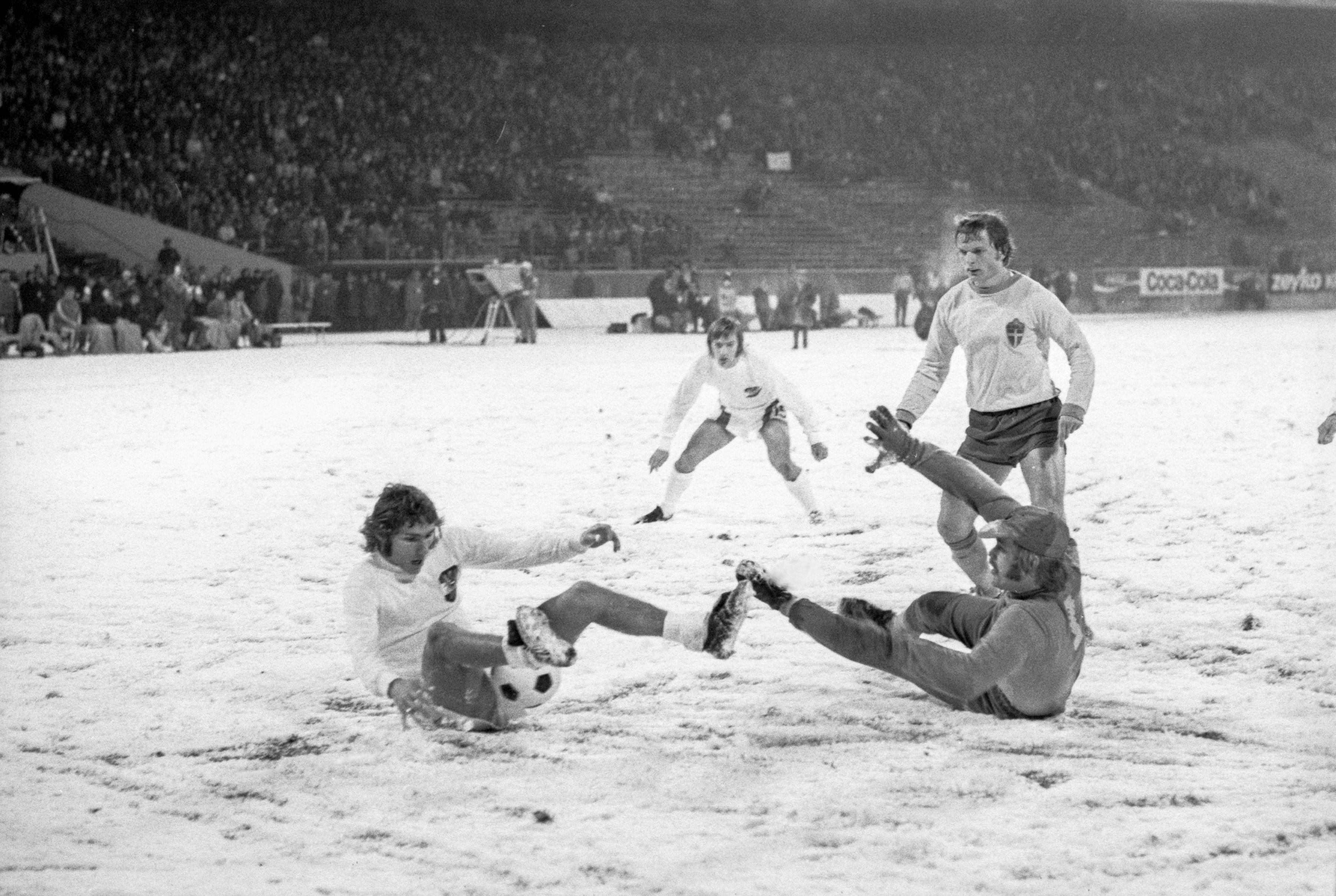 Punkt- und torgleich mit Schweden hatte das ÖFB-Team die Quali-Gruppe beendet. Ein Match auf neutralem Boden sollte entscheiden, wer von den beiden Teams zur Endrunde nach Deutschland darf. Im gerade fertiggestellten neuen Stadion des FC Schalke 04 – dem 2001 ausrangierten Parkstadion – gab es am 27. November 1973 eine veritable Schneeballschlacht, mit dem besseren Ende für Schweden. Ein katastrophaler Abwehrschnitzer und ein Elfmeter brachte Österreich früh auf die Verliererstraße, am Ende hieß es 1:2.