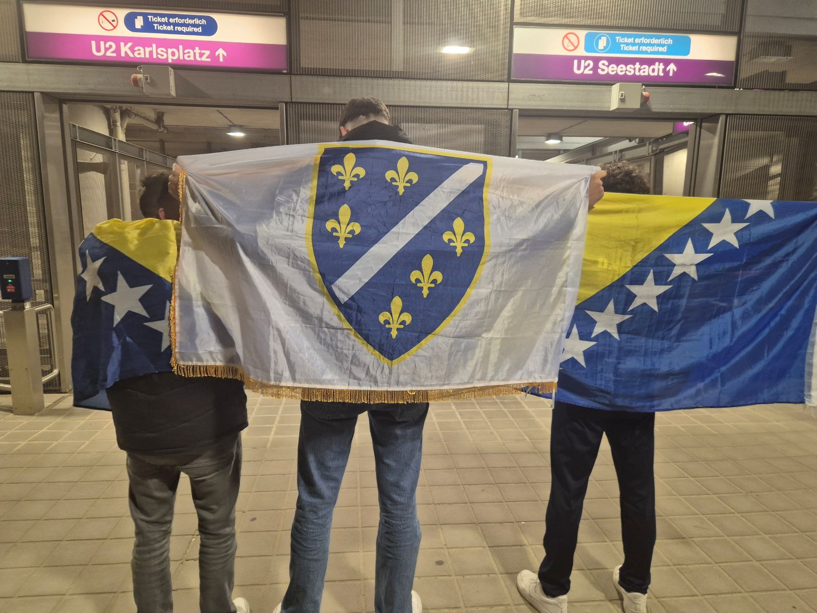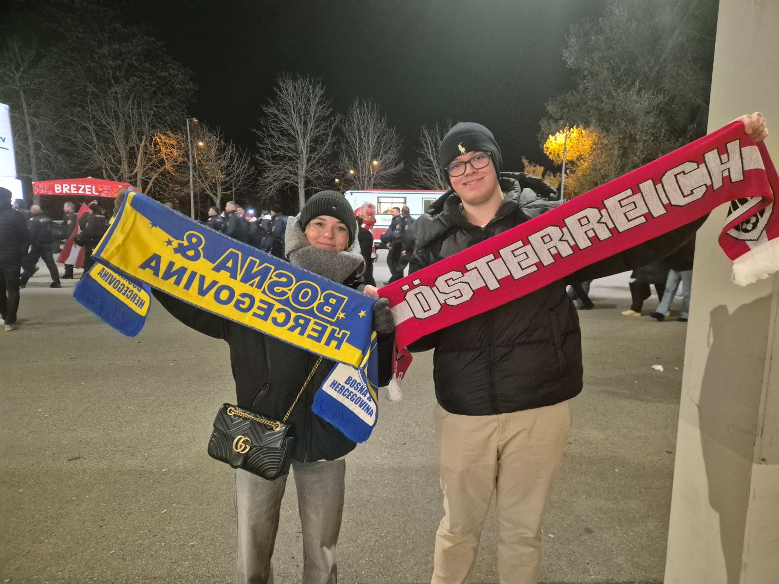 Vor dem Stadion hat sich bereits Glanz und Gloria versammelt. ÖFB-Ikone Andreas Herzog philosophiert für Arbeitgeber "Sky", ORF-Satiriker Peter Klien zieht umher, um ihn bildet sich manch größere Menschentraube als um einen der Hauptakteure. Österreichische und bosnische Anhänger liegen Arm in Arm ineinander, vor dem Stadion herrscht Volksfeststimmung. Gegenüber weekend.at erklärt der mitgereiste ORF-Moderator Christian Diendorfer trocken: "Das wird ein 1:1. Das reicht uns ja eh." Ein Fan unterbricht voller Enthusiasmus: "Österreich gewinnt 2:0."