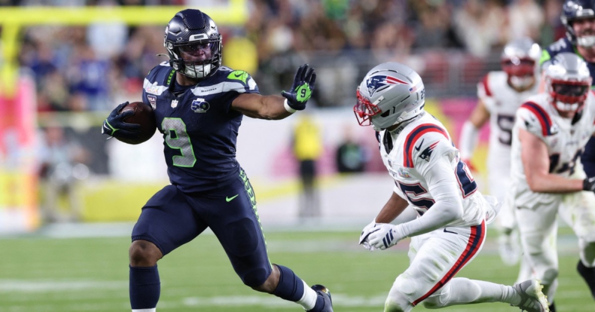 Runningback Kenneth Walker III prägt das Spielgeschehen mit seinen Läufen. Immer wieder verschafft er den Seahawks Raumgewinn und hält die Patriots-Defense auf dem Feld. Mit 135 erlaufenen Yards ist er einer der entscheidenden Faktoren im Super Bowl.