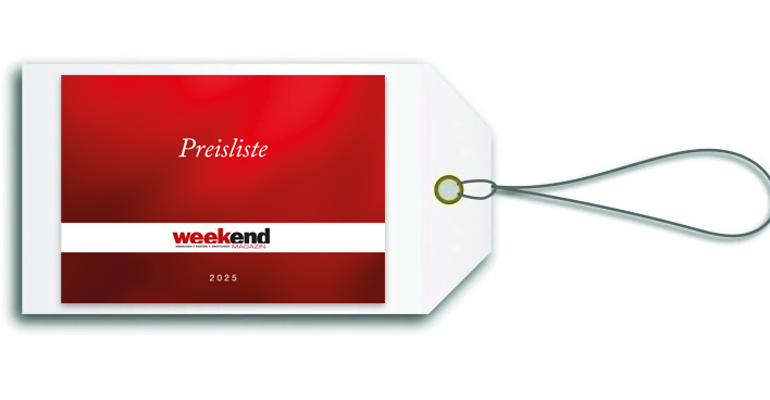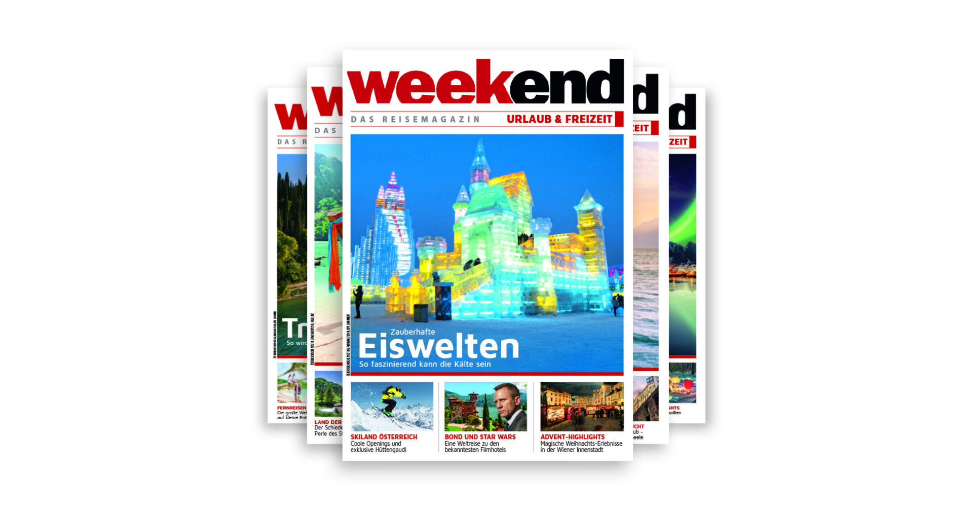 Reisen vom Feinsten: Weekend präsentiert die besten Tipps für Urlaub, Ausflüge und Action-Trips, um den Leserinnen und Lesern ein unvergessliches Freizeiterlebnis zu bereiten. Werben Sie im Umfeld der interessantesten Reisedestinationen im In- und Ausland, der attraktivsten Tourismus-gebiete oder reizvollsten Ausflugsmöglichkeiten für die ganze Familie.